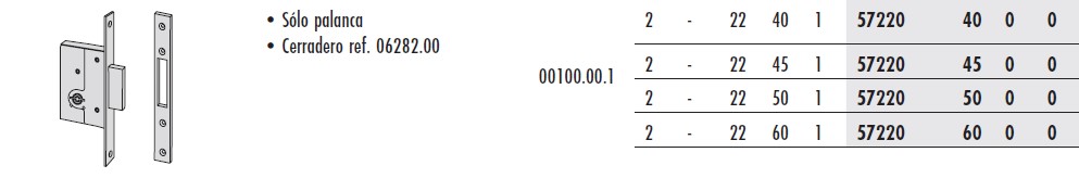 Cerraduras de embutir de borjas con 2 vueltas y palanca de la serie 57200 de Cisa.