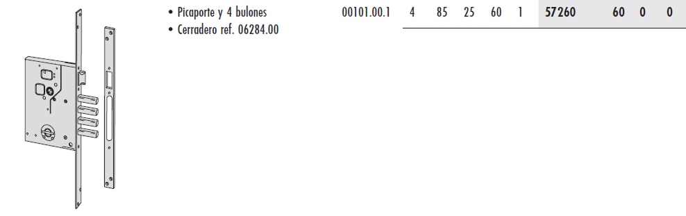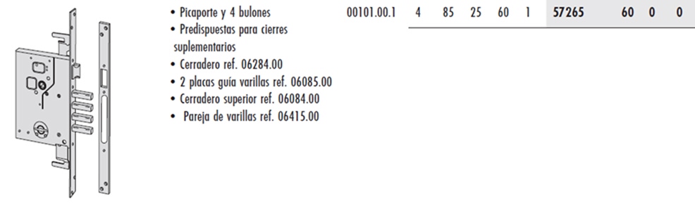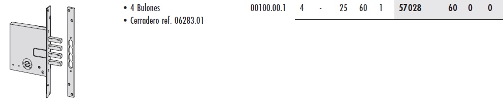 Cerraduras de embutir de borjas con 4 vueltas y bulones de la serie 57000 de Cisa