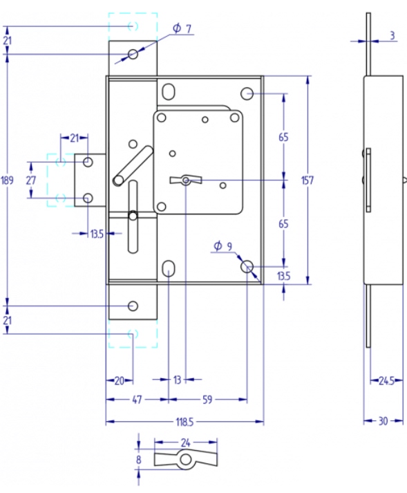 Cerradura de arrastre de sobreponer para caja fuerte, modelo 240 de Aga.